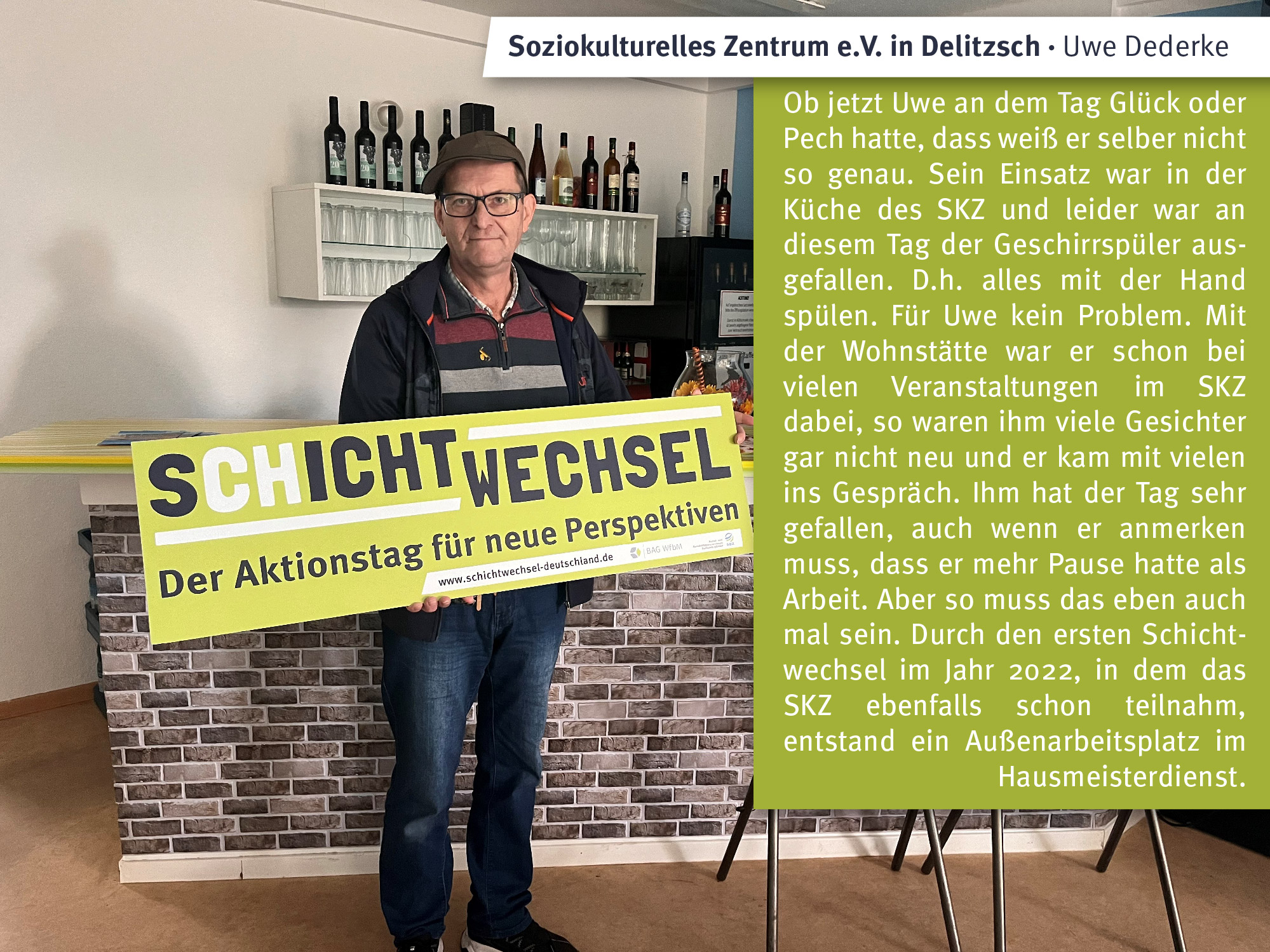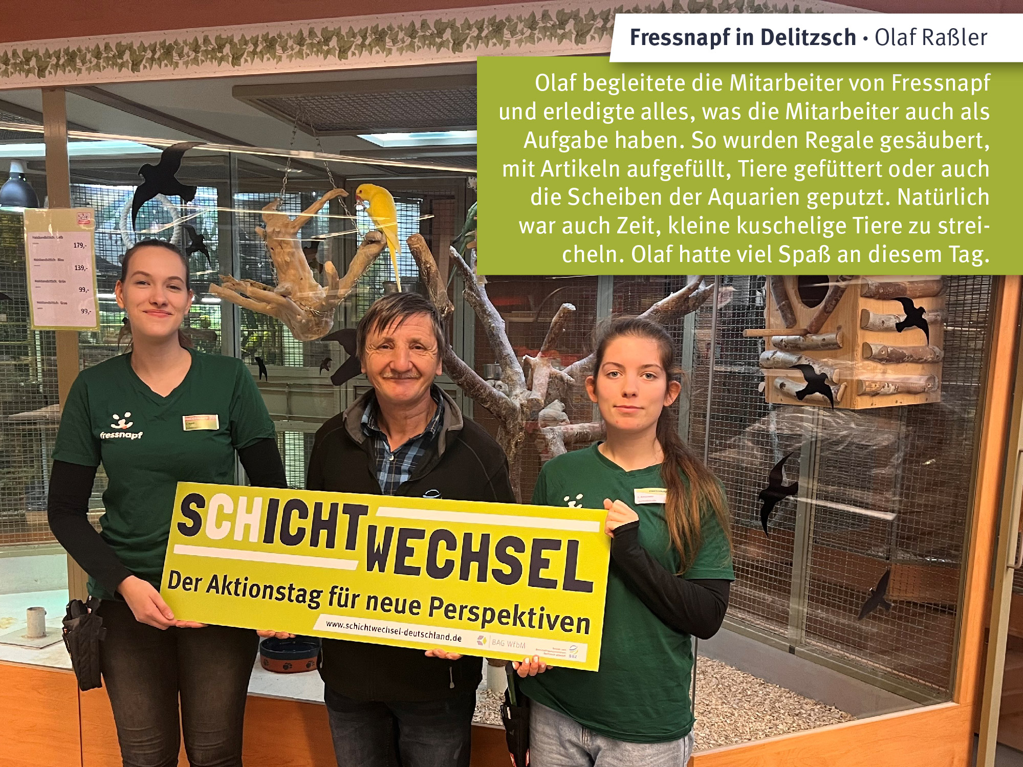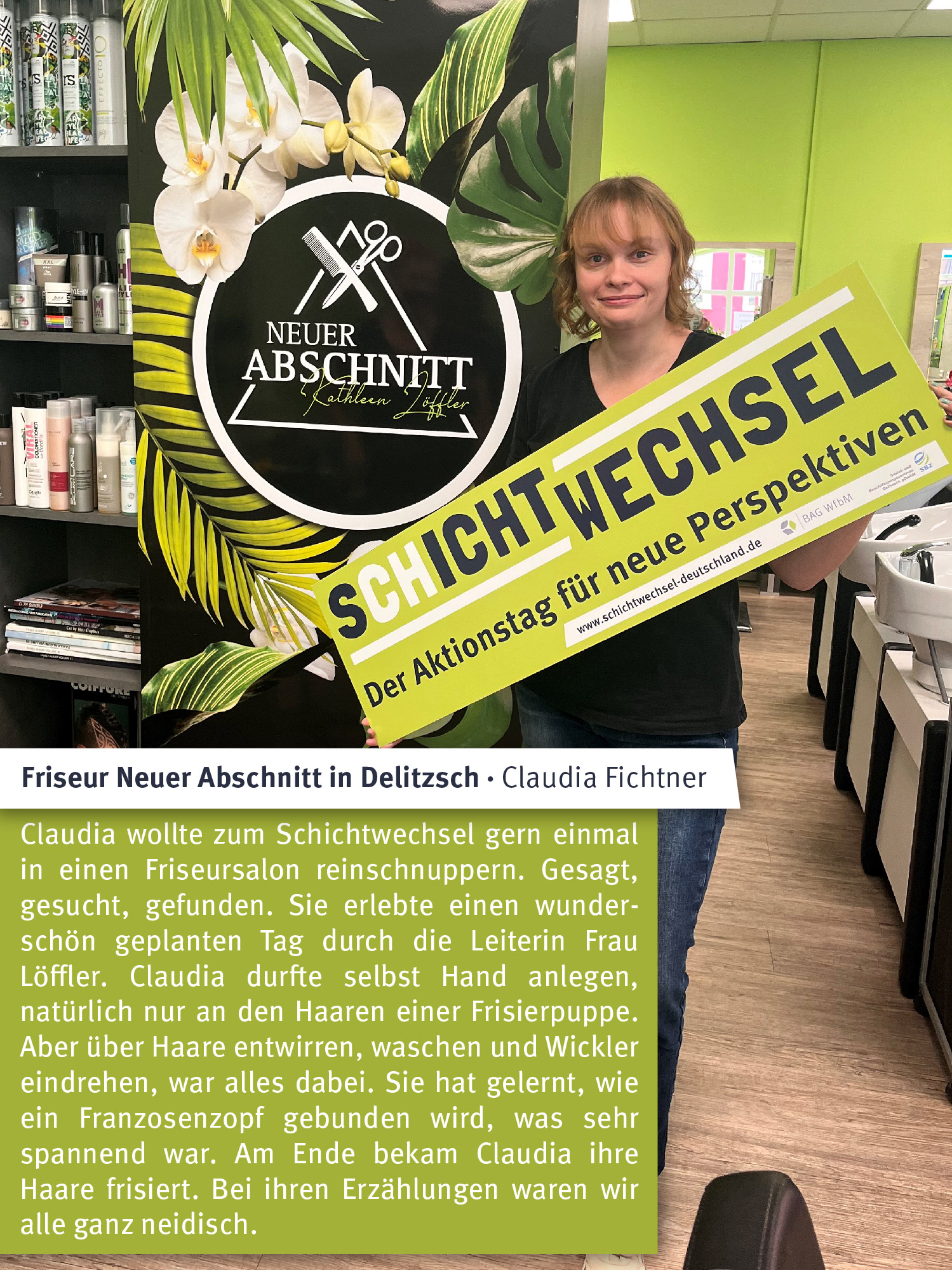 Aus einer Berliner Idee entstand der bundesweite Aktionstag, deren Resonanz von Jahr zu Jahr steigt. Unsere Werkstatt in Delitzsch nahm bereits zum 3. Mal teil. Waren wir 2022 eine von vier Werkstätten, nahmen in diesem Jahr 23 sächsische Werkstätten am Projekt Schichtwechsel teil.